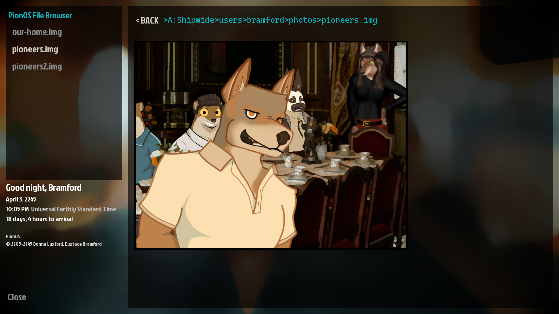 The crew of the Vessel Pion gathers to toast the culmination of their lifelong mission, their camaraderie, and their new world on the planet Azulea. Love blooms. Wine pours. The first body drops.